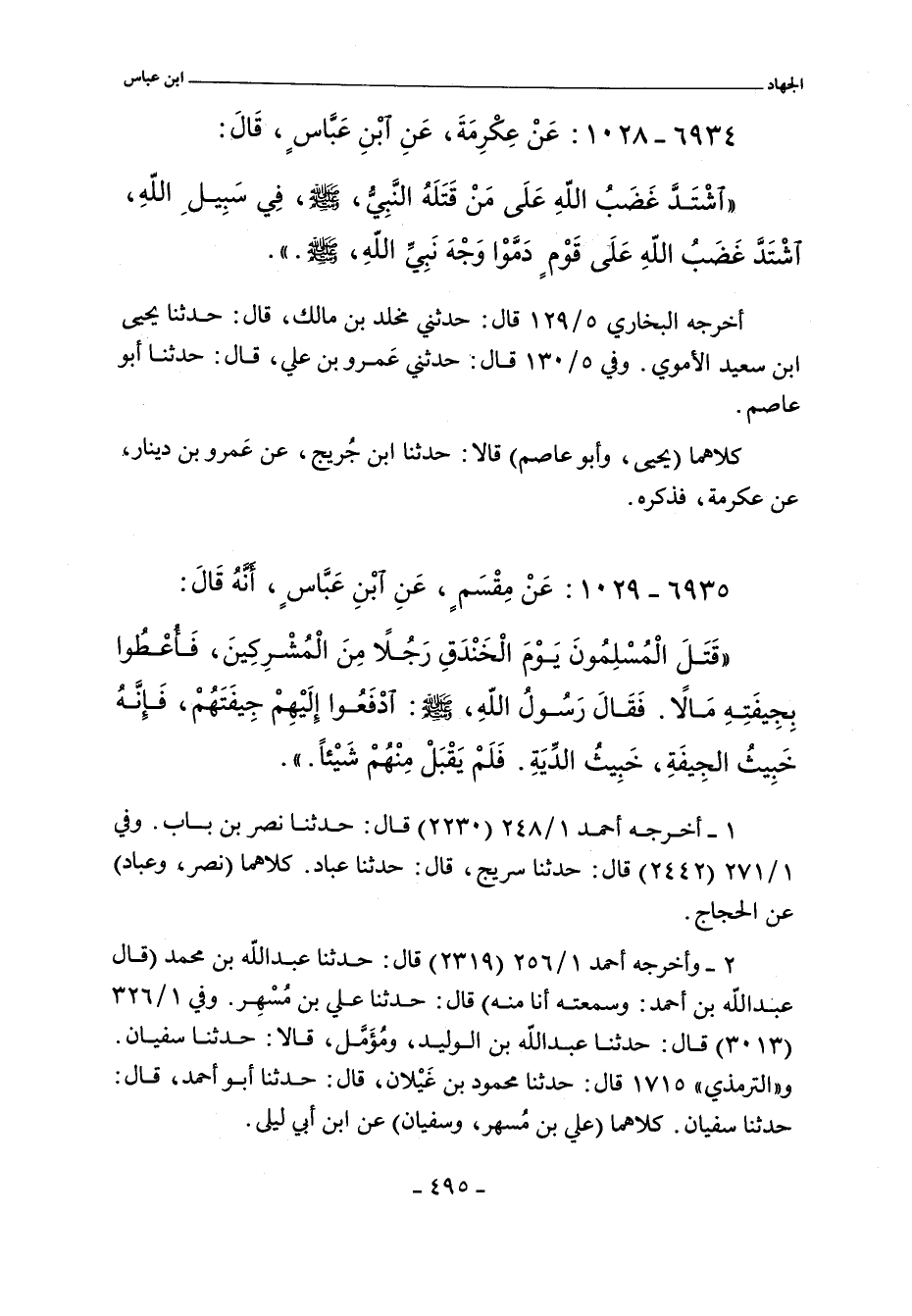 ٦٩٣٤ - عَنْ عِكْرِمَةَ عَنِ ابْنِ عَبَّاسٍ رضى الله عنهما قَالَ: