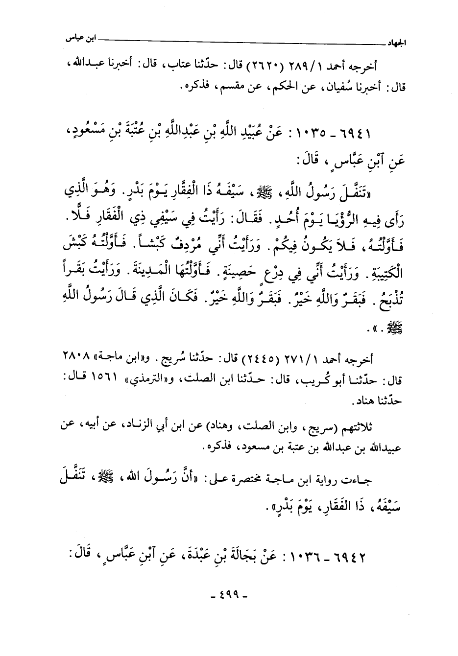 - ولفظ ابن الصلت: أن رسول الله , صلى الله عليه وسلم , تنفل سيفه ذا الفقار يوم بدر.