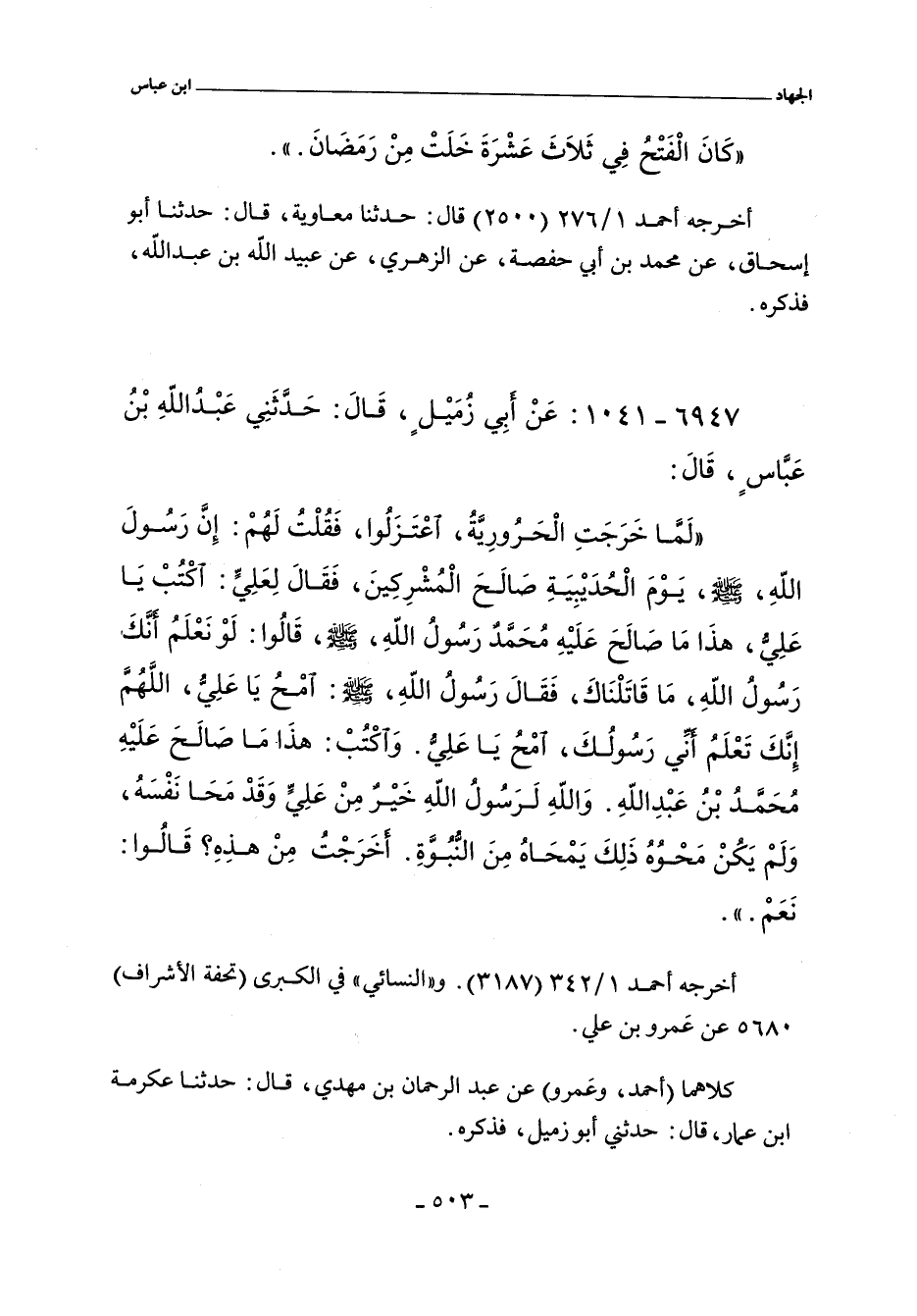 - رواية أحمد مختصرة على قصة الحديبية.