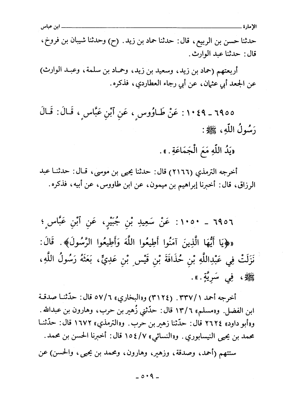 ستتهم (أحمد، وصدقة، وزهير أبو خيثمة، وهارون، ومحمد بن يحيى، والحسن) عن
