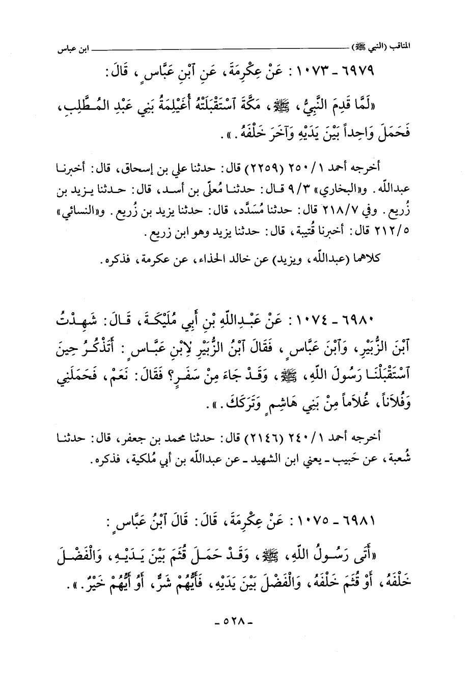 ٦٩٨٠ - عن عَبْدِ اللَّهِ بْنِ أَبِى مُلَيْكَةَ , قَالَ: شَهِدْتُ ابْنَ الزُّبَيْرِ , وَابْنَ عَبَّاسٍ , فَقَالَ ابْنُ الزُّبَيْرِ لاِبْنِ عَبَّاسٍ: أَتَذْكُرُ حِينَ اسْتَقْبَلْنَا رَسُولَ اللَّهِ , صلى الله عليه وسلم , وَقَدْ جَاءَ مِنْ سَفَرٍ؟ فَقَالَ: نَعَمْ , فَحَمَلَنِى وَفُلَانًا , غُلَامًا مِنْ بَنِى هَاشِمٍ , وَتَرَكَكَ.