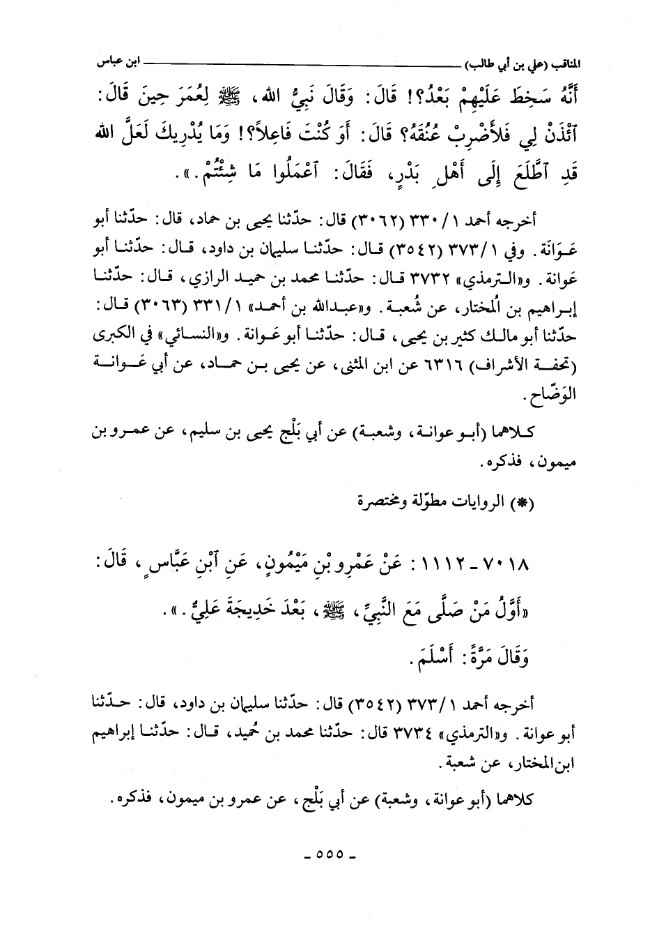 أخرجه أحمد ١/ ٣٧٣ (٣٥٤٢) قال: حدثنا سليمان بن داود، حدثنا أبو عوانة. والتِّرْمِذِيّ" ٣٧٣٤ قال: حدثنا محمد بن حميد , حدثنا، إبراهيم بن الُمختار، عن شعبة.