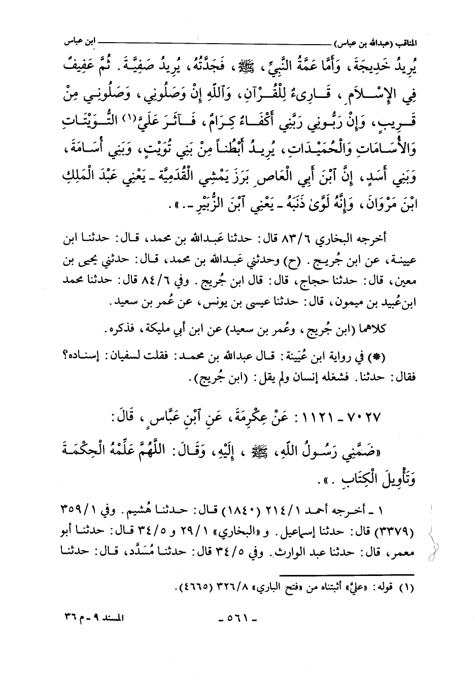 أخرجه أحمد ١/ ٢١٤ (١٨٤٠) قال: حدثنا هُشيم , عن خالد. وفي ١/ ٢٦٩ (٢٤٢٢) قال: حدثنا أبو سعيد , حدثنا سليمان بن بلال. قال: حدثنا حسين بن عبد الله. وفي ١/ ٣٥٩ (٣٣٧٩) قال: حدثنا إسماعيل , أخبرنا خالد الحذاء. و"البُخَاريّ" ١/ ٢٩ (٧٥) و ٥/ ٣٤ (٣٧٥٦) قال: حدثنا أبو معمر. قال: حدثنا عبد الوارث. قال: حدثنا خالد. وفي ٥/ ٣٤ (٣٧٥٦) قال: حدثنا مُسَدَّد، حدثنا