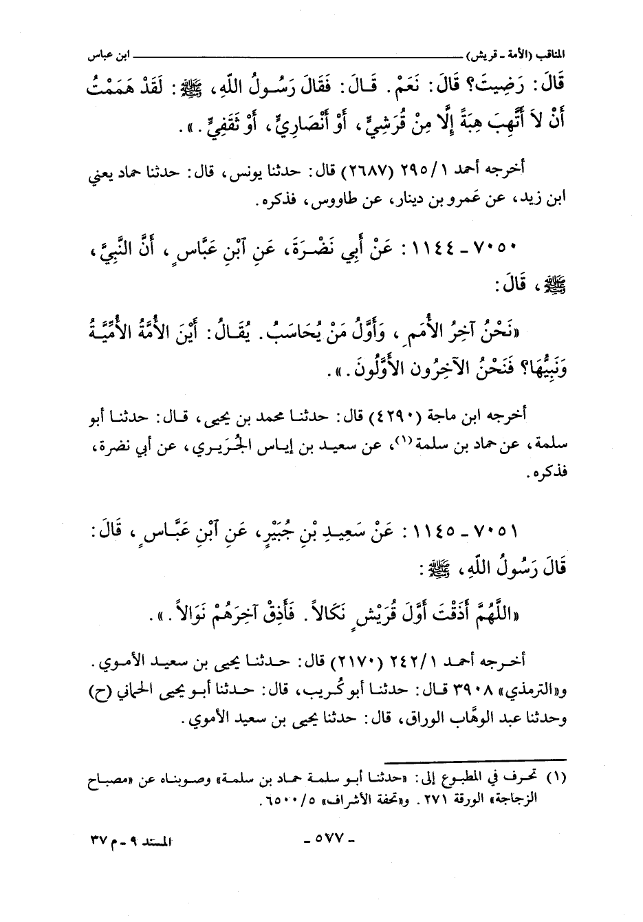 أخرجه أحمد ١/ ٢٤٢ (٢١٧٠) قال: حدثنا يحيى بن سعيد الأموي. والتِّرْمِذِيّ" ٣٩٠٨ قال: حدثنا أبو كُريب، حدثنا أبو يحيى الحماني (ح) وحدثنا عبد الوهاب الوراق، حدثنا يحيى بن سعيد الأموي.