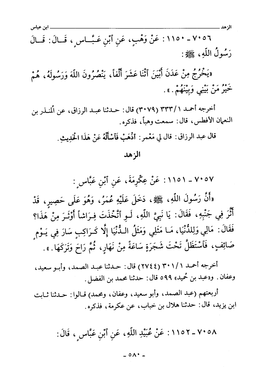 ٧٠٥٦ - عن وَهْب , عَنِ ابْنِ عَبَّاسٍ قَالَ قَالَ رَسُولُ اللَّهِ صلى الله عليه وسلم: