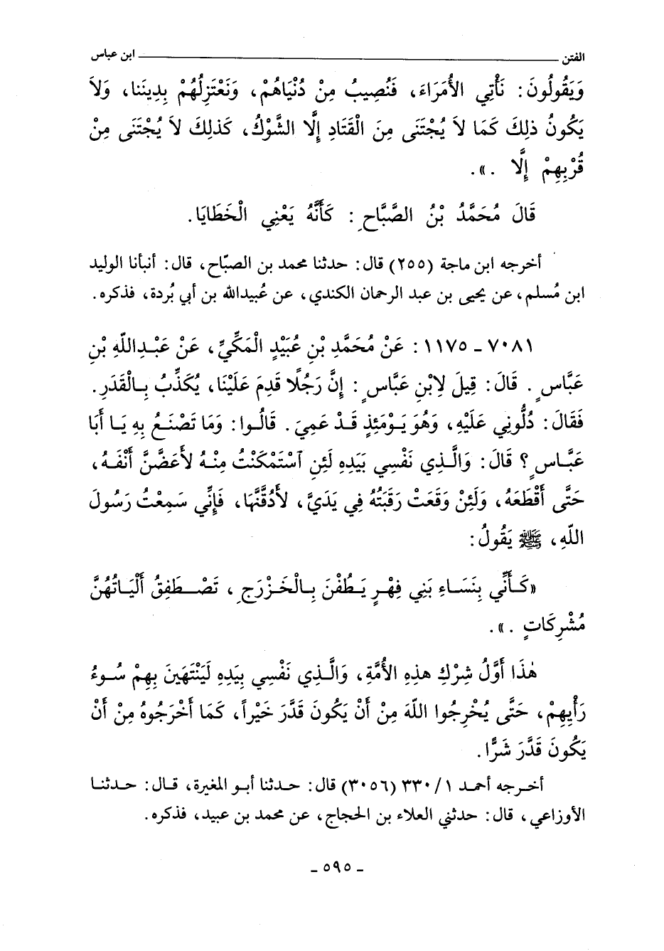 هَذَا أَوَّلُ شِرْكِ هَذِهِ الأُمَّةِ وَالَّذِى نَفْسِى بِيَدِهِ لَيَنْتَهِيَنَّ بِهِمْ سُوءُ رَأْيِهِمْ حَتَّى يُخْرِجُوا اللَّهَ مِنْ أَنْ يَكُونَ قَدَّرَ خَيْرًا كَمَا أَخْرَجُوهُ مِنْ أَنْ يَكُونَ قَدَّرَ شَرًّا.