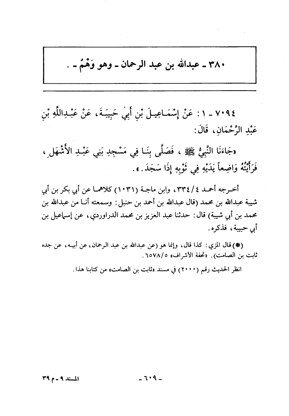 ٣٨١ - عبد الله بن عبد الرحمن - وهو وهم