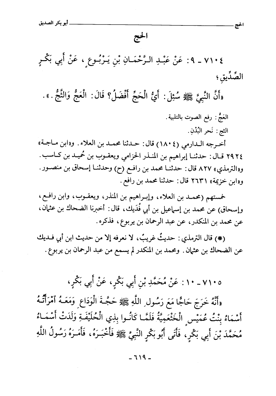 أخرجه الدارمي (١٨٠٤) قال: حدَّثنا محمد بن العلاء. و (اابن ماجة) ٢٩٢٤ قال: حدَّثنا إبراهيم بن المنذر الحزامي ويعقوب بن حُميد بن كاسب. والتِّرْمِذِيّ" ٨٢٧ قال: حدَّثنا محمد بن رافع (ح) وحدثنا إسحاق بن منصور. و"ابن خزيمة" ٢٦٣١ قال: حدَّثنا محمد بن رافع.