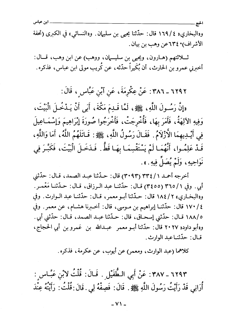 أخرجه أحمد ١/ ٣٣٤ (٣٠٩٣) قال: حدثنا عبد الصمد، قال: حدثني أبي. وفي ١/ ٣٦٥ (٣٤٥٥) قال: حدثنا عبد الرزاق، حدثنا مَعْمر. و"البُخَاريّ" ٢/ ١٨٤ (١٦٠١) قال: حدثنا أبو معمر، حدثنا عبد الوارث. وفي ٤/ ١٧٠ (٣٣٥٢) قال: حدثنا إبراهيم بن موسى، أخبرنا هشام، عن معمر. وفي ٥/ ١٨٨ (٤٢٨٨) قال: حدثني إسحاق، حدثنا عبد الصمد، قال: حدثني أبي. و (ابوداود) ٢٠٢٧ قال: حدثنا ابومعمر عبد الله بن عَمرو بن أبي الحجاج، حدثنا محمد الوارث.