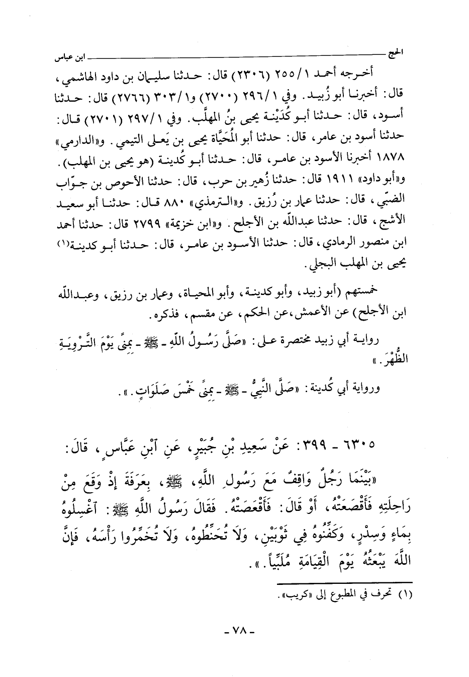 أخرجه أحمد ١/ ٢٥٥ (٢٣٠٦) قال: حدثنا سليمان بن داود الهاشمي، أخبرنا أبو زبيد. وفي ١/ ٢٩٦ (٢٧٠٠) و ١/ ٣٠٣ (٢٧٦٦) قال: حدثنا اسود، حدثنا أبو كدينة، يحيى بن المهلب. وفي ١/ ٢٩٧ (٢٧٠١) قال: حدثنا اسود بن عامر، حدثنا أبو المحياة، يحيى بن يعلى التيمي. و"الدارمي" ١٨٧١ قال: أخبرنا الاسود بن عامر، حدثنا أبو كدينة، هو يحيى بن المهلب. و"أبو داود" ١٩١١ قال: حدثنا زهير بن حرب، حدثنا الأحوص بن جواب الضبي، حدثنا عمار بن رزيق. والتِّرْمِذِيّ" ٨٨٠ قال: حدثنا أبو سعيد الأشج، حدثنا عبد الله بن الأجلح. و"ابن خزيمة" ٢٧٩٩ قال: حدثنا أحمد بن منصور الرمادي، حدثنا الاسود بن عامر، حدثنا أبو كدينة، يحيى بن المهلب البجلي.