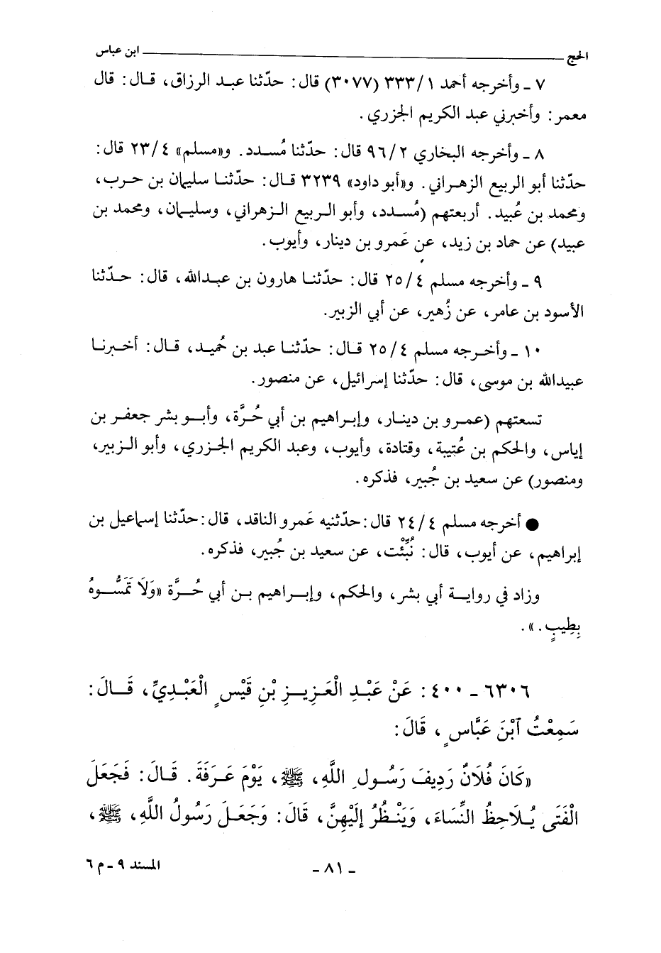 وفي ٥/ ١٩٦ (٣٨٢٥) قال: أخبرني محمد بن قدامة. قال: حدثنا جرير , عن منصور , عن الحكم. وفي ٥/ ١٩٧ , وفي "الكبرى" ٣٨٢٦ قال: أخبرنا محمد بن معاوية. قال: حدثنا خلف , يعني بن خليفة , عن أبي بشر. وفي ٥/ ١٩٧ , وفي "الكبرى" ٣٨٢٧ قال: أخبرنا عمران بن يزيد. قال: حدثنا شعيب بن إسحاق. قال: أخبرني ابن جريج. قال: أخبرني عمرو بن دينار.