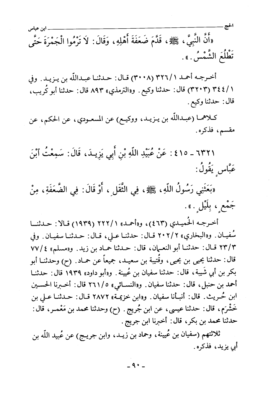ثلاثتهم (سفيان بن عيينة، وحماد بن زيد، وابن جريج) عن عبيد الّله بن أبي يزيد، فذكره.