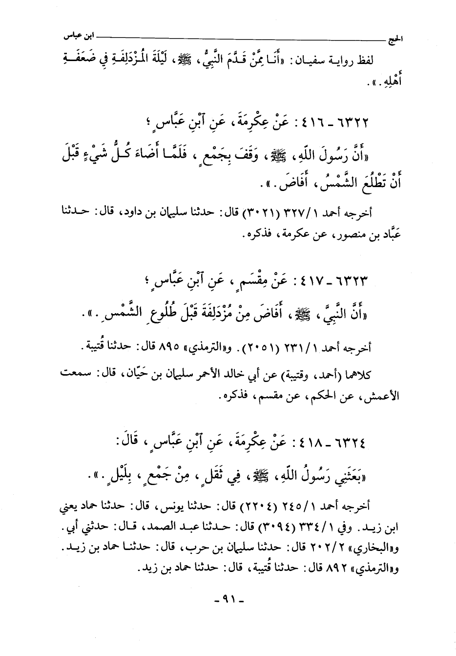 أخرجه أحمد ١/ ٢٤٥ (٢٢٠٤) قال: حدثنا يونس، حدثنا حماد، يعني ابن زيد. وفي ١/ ٣٣٤ (٣٠٩٤) قال: حدثنا عبد الصمد، حدثني أبي. و"البُخاري" ٢/ ٢٠٢ (١٦٧٧) قال: حدثنا سليمان بن حرب، حدثنا حماد بن زيد. و"التِّرمِذي" ٨٩٢ قال: حدثنا قُتيبة، حدثنا حماد بن زيد , عن أيوب، عن عكرمة، فذكره.
