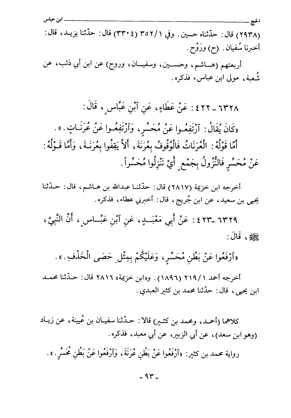 كان يقال: ارتفعوا عن محسر، وارتفعوا عن عرنات.