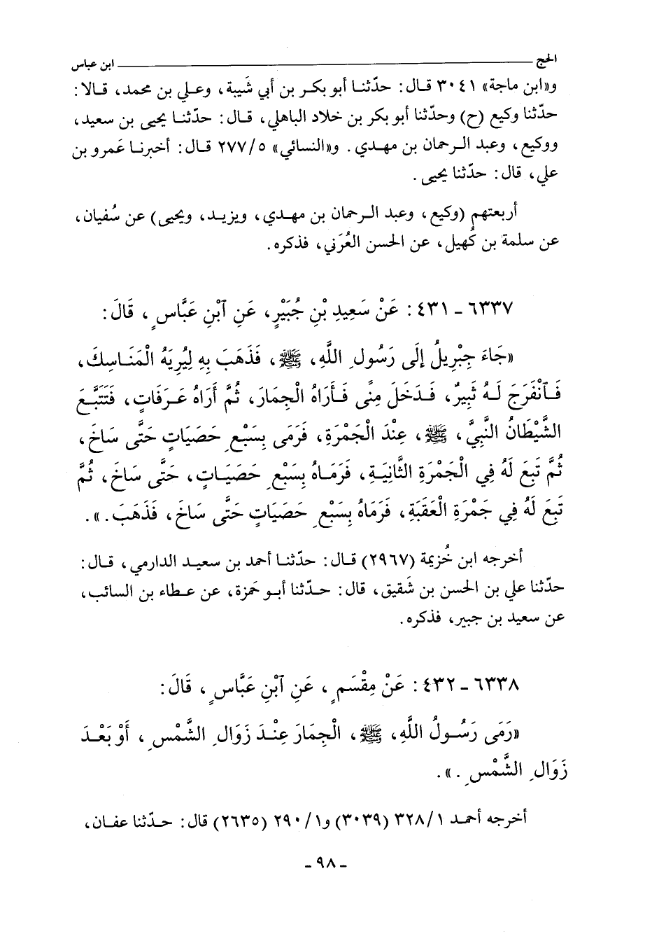 و"ابن ماجة" ٣٠٤١ قال: حدثنا أبو بكر بن أبي شيبة، وعلي بن محمد، قالا: حدثنا وكيع (ح) وحدثنا أبو بكر بن خلاد الباهلي، حدثنا يحيى بن سعيد، ووكيع، وعبد الرحمن بن مهدي. و"النَّسائي" ٥/ ٢٧٧ , وفي "الكبرى" ٤٠٧٦ قال: أخبرنا عَمرو بن علي. قال: حدثنا يحيى.