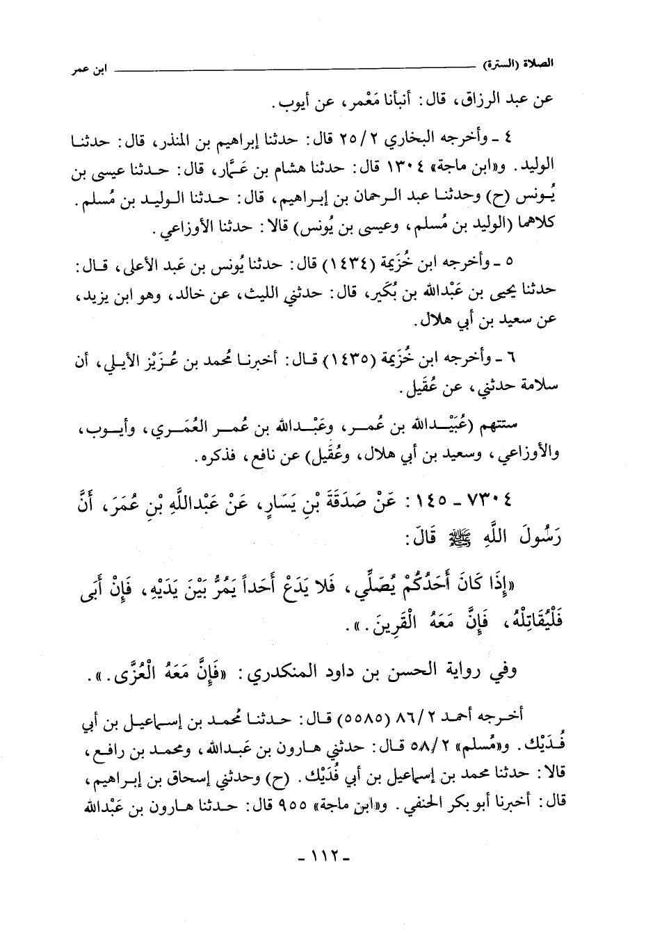 ٧٣٠٤ - عَنْ صَدَقَةَ بْنِ يَسَارٍ عَنْ عَبْدِ اللَّهِ بْنِ عُمَرَ أَنَّ رَسُولَ اللَّهِ صلى الله عليه وسلم قَالَ: