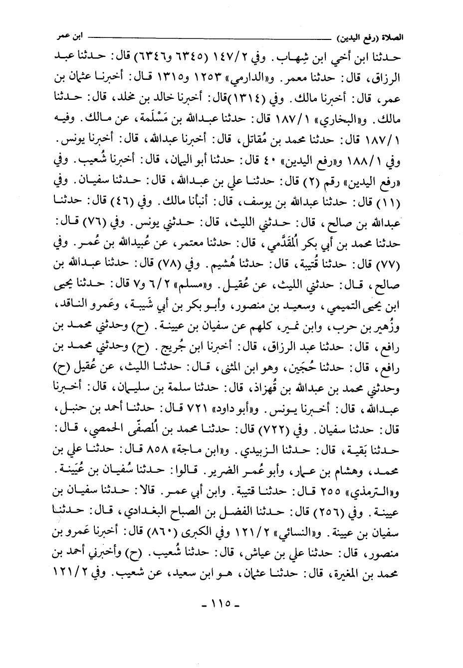 حدثنا ابن أخي ابن شِهاب. وفي ٢/ ١٤٧ (٦٣٤٥ و ٦٣٤٦) قال: حدثنا عبد الرزاق، حدثنا معمر. و"الدارِمِي" ١٢٥٠ و ١٣٠٩ قال: أخبرنا عثمان بن عمر، أخبرنا مالك. وفي (١٣٠٨) قال: أخبرنا خالد بن مخلد، حدثنا مالك. و"البُخَارِي" ١/ ١٨٧ (٧٣٥) قال: حدثنا عبد الله بن مُسْلِمة، عن مالك. وفي (٧٣٦) , وفي (رفع اليدين) ١٠٠ قال: حدثنا مُحَمَّد بن مُقاتل. قال: أخبرنا عبد الله. قال: أخبرنا يونس. وفي ١/ ١٨٨ (٧٣٨) , و (رفع اليدين) ٤٠ قال: حدثنا أبو اليمان. قال: أخبرنا شُعيب. وفي (رفع اليدين) ٢ قال: حدثنا علي بن عبد الله، حدثنا سُفْيان. وفي (١١) قال: حدثنا عبد الله بن يوسف، أنبأنا مالك. وفي (٤٦) قال: حدثنا عبد الله بن صالح، حدثني الليث، حدثني يونس. وفي (٧٦) قال: حدثنا مُحَمَّد بن أبي بكر الُمقَدَّمي، حدثنا معتمر، عن عبيد الله بن عُمر. وفي (٧٧) قال: حدثنا قُتيبة، حدثنا هُشيم. وفي (٧٨) قال: حدثنا عبد الله بن صالح، قال: حدثني الليث، عن عُقيل. وفي (٧٩) قال: حدثنا مُحَمَّد بن عبد لله بن حوشب , حدثنا عبد الوهاب , حدثنا عبيد الله. و"مسلم" ٢/ ٦٠ (٧٩٠) قال: حدثنا يحيى بن يحيى التميمي، وسعيد بن منصور، وأبو بكر بن أبي شَيبة، وعَمرو الناقد، وزُهيربن حرب، وابن نُمَيْر، كلهم عن سُفْيان بن عيينة (قال يحيى: أخبرنا سُفْيان بن عيينة. وفي (٧٩١) قال: حدثني مُحَمَّد بن رافع , حدثنا عبد الرزاق، أخبرنا ابن جُريج. وفي ٢/ ٧ (٧٩٢) قال: حدثني مُحَمَّد بن رافع، حدثنا حُجَين، وهو ابن المثنى، حدثنا الليث، عن