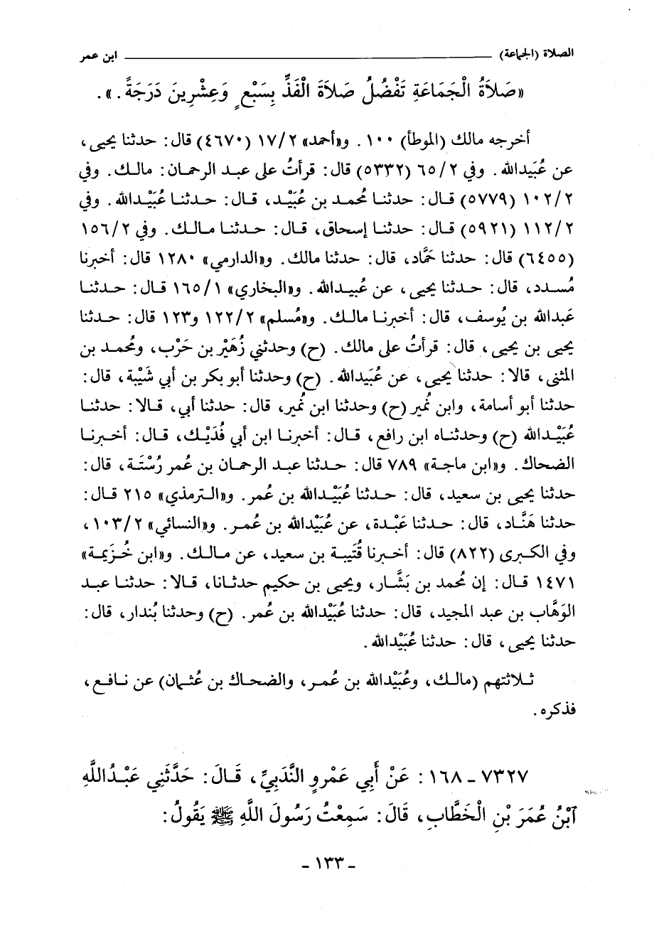 - وأخرجه البخاري ١/ ١٦٦ (٦٤٩) قال: حدثنا أبو اليمان. قال شعيب: وحدثني نافع , عن عبد الله بن عمر. قال: تفضلها بسبع وعشرين درجة.