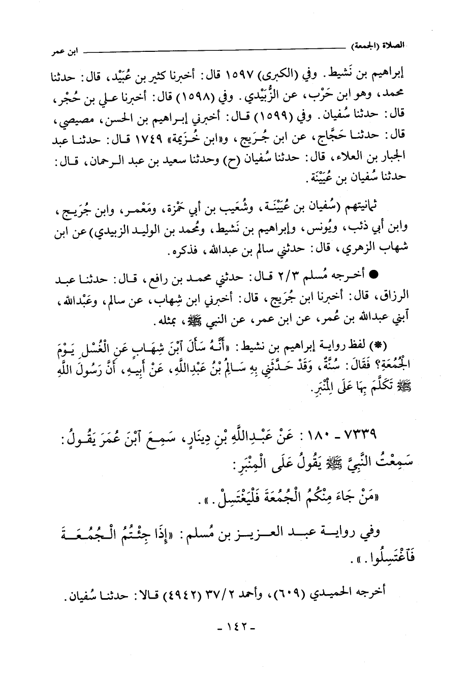 إبراهيم بن نشيط , أنه سأل ابن شهاب عن الغسل يوم الجمعة. فقال: سنة , وقد حدثني بن سالم بن عبد الله , عن أبيه؛ أن رسول الله صلى الله عليه وسلم تكلم بها على المنبر.