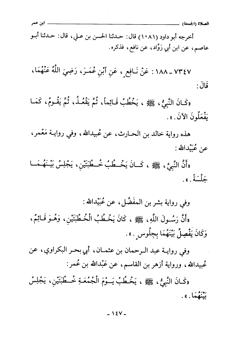 - وفي رواية: كَانَ النَّبِىَّ صلى الله عليه وسلم يَخْطُبُ يَوْمَ الْجُمُعَةِ خُطْبَتَيْنِ , يَجْلِسُ بَيْنَهُمَا.