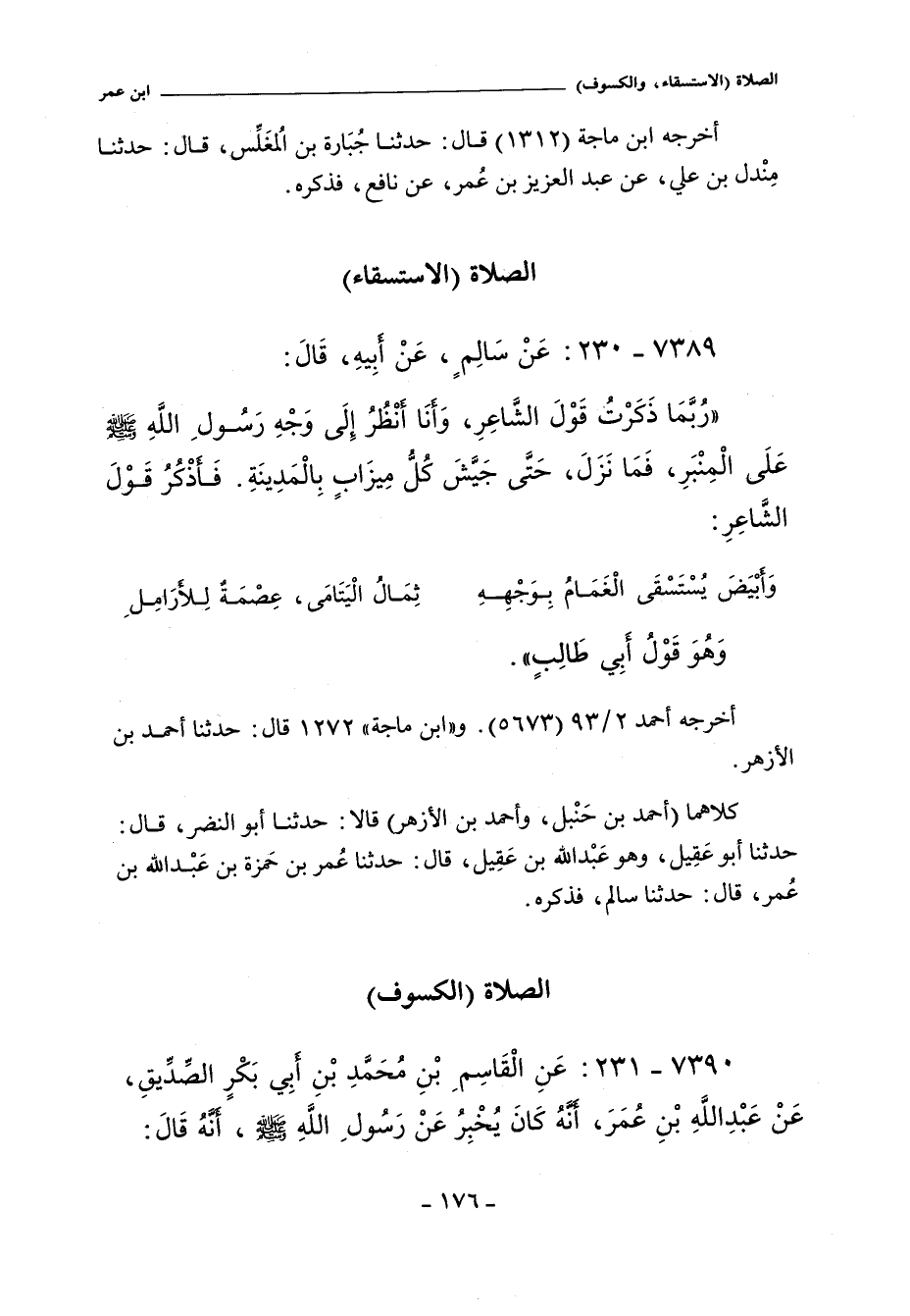 - أخرجه البخاري ٢/ ٣٣ (١٠٠٨) قال: حَدَّثَنَا عَمْرُو بْنُ عَلِىٍّ. قَالَ: حَدَّثَنَا أَبُو قُتَيْبَةَ , قَالَ: حَدَّثَنَا عَبْدُ الرَّحْمَنِ بْنُ عَبْدِ اللَّهِ بْنِ دِينَارٍ , عَنْ أَبِيهِ , قَالَ: سَمِعْتُ ابْنَ عُمَرَ يَتَمَثَّلُ بِشِعْرِ أَبِى طَالِبٍ: