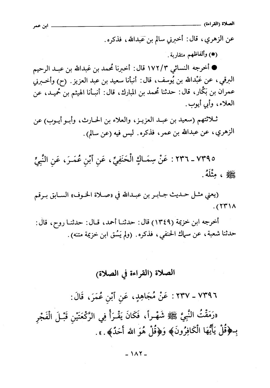 - قَالَ أَبُو بَكْرِ بْنُ السُّنِّىِّ: الزُّهْرِىُّ سَمِعَ مِنِ ابْنِ عُمَرَ حَدِيثَيْنِ , وَلَمْ يَسْمَعْ هَذَا مِنْهُ.