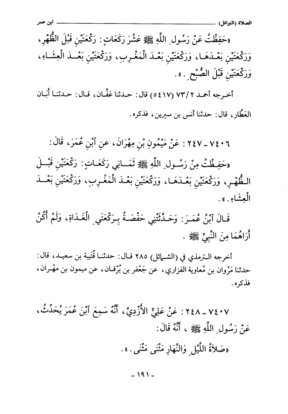 صَلَاةُ اللَّيْلِ وَالنَّهَارِ مَثْنَى مَثْنَى.