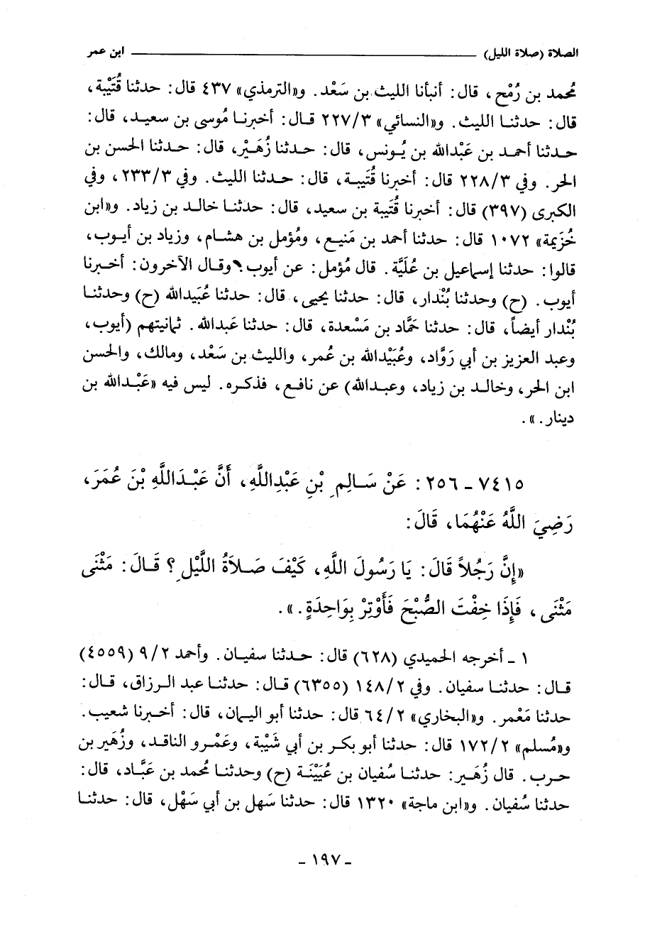 ١ - أخرجه الحميدي ٦٢٨ قال: حدثنا سُفْيان. و"أحمد" ٢/ ٩ (٤٥٥٩) قال: حدثنا سُفْيان. وفي ٢/ ١٤٨ (٦٣٥٥) قال: حدثنا عبد الرزاق , حدثنا معمر. و"البُخَاريّ" ٢/ ٦٤ (١١٣٧) قال: حدثنا أبو اليمان. قال: أخبرنا شعيب. و"مسلم" ٢/ ١٧٢ (١٦٩٦) قال: حدثنا أبو بكر بن أبي شيبة , وعمرو الناقد , وزهير بن حرب. قال زهير: حدثنا سُفْيان بن عيينة (ح) وحدثنا مُحَمَّد بن عباد , حدثنا سُفْيان. و"ابن ماجة" ١٣٢٠ قال: حدثنا سهل بن أبي سهل , حدثنا