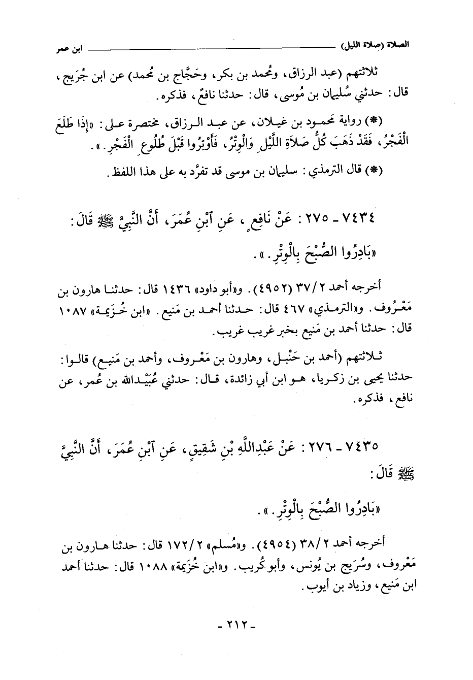 أخرجه أحمد ٢/ ٣٧ (٤٩٥٢. و"أبو داود" (١٤٣٦) قال: حدثنا هارون بن مَعْرُوف. والتِّرْمِذِيّ" ٤٦٧ قال: حدثنا أحمد بن مَنيع (ابن خُزَيْمَة) ١٠٨٧ قال: حدثنا أحمد بن مَنيع بخبرغريب غريب.