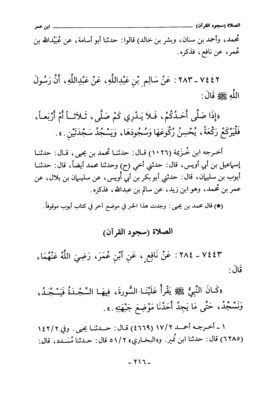 أخرجه ابن خُزَيْمَة (١٠٢٦) قال: حدثنا مُحَمَّد بن يحيى، حدثنا إسماعيل بن أبي أويس، حدثني أخي (ح) وحدثنا مُحَمَّد أيضًا، حدثنا أيوب بن سليمان، حدثني أبو بكر بن أبي أويس، عن سليمان بن بلال، عن عمر بن مُحَمَّد، وهو ابن زيد، عن سالم بن عبد الله، فذكره.