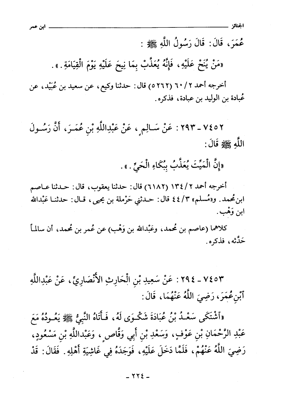 ٧٤٥٣ - عَنْ سَعِيدِ بْنِ الْحَارِثِ الأَنْصَارِىِّ عَنْ عَبْدِ اللَّهِ بْنِ عُمَرَ , رضى الله عنهما , قَالَ: