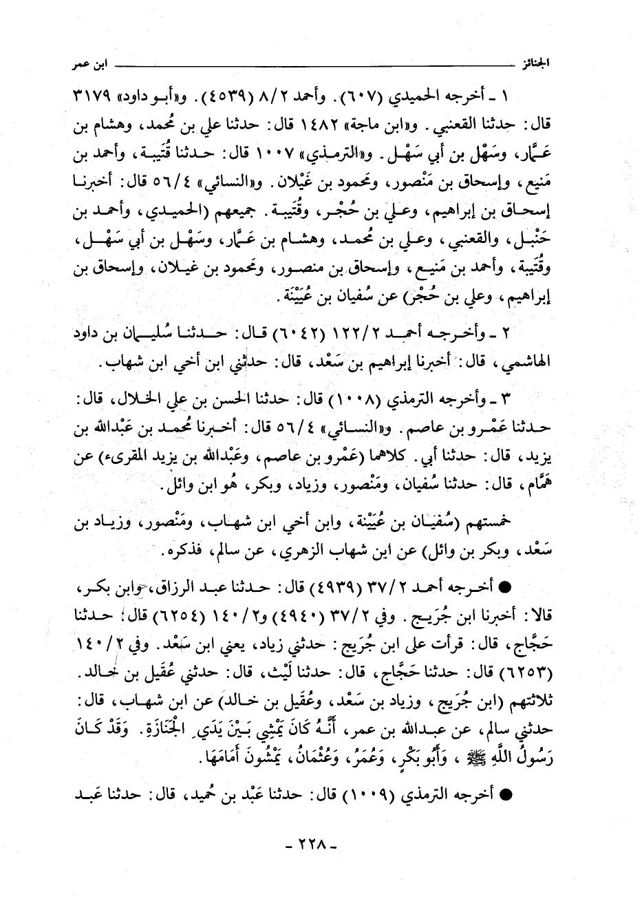 - قَالَ الترمذي: حَدِيثُ ابْنِ عُمَرَ هَكَذَا رَوَاهُ ابْنُ جُرَيْجٍ , وَزِيَادُ بْنُ سَعْدٍ , وَغَيْرُ وَاحِدٍ , عَنِ الزُّهْرِىِّ , عَنْ سَالِمٍ , عَنْ أَبِيهِ , نَحْوَ حَدِيثِ ابْنِ عُيَيْنَةَ.