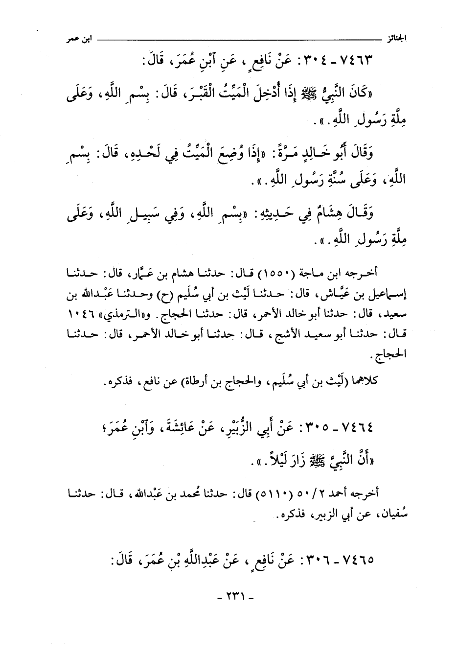 ٧٤٦٣ - عَنْ نَافِعٍ عَنِ ابْنِ عُمَرَ قَالَ: