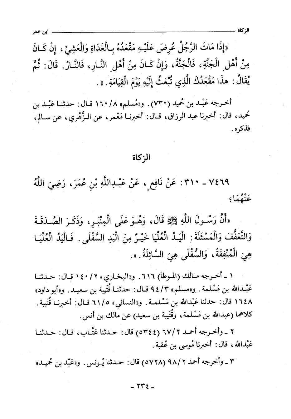 ٧٤٦٩ - عَنْ نَافِعٍ عَنْ عَبْدِ اللَّهِ بْنِ عُمَرَ - رضى الله عنهما -؛