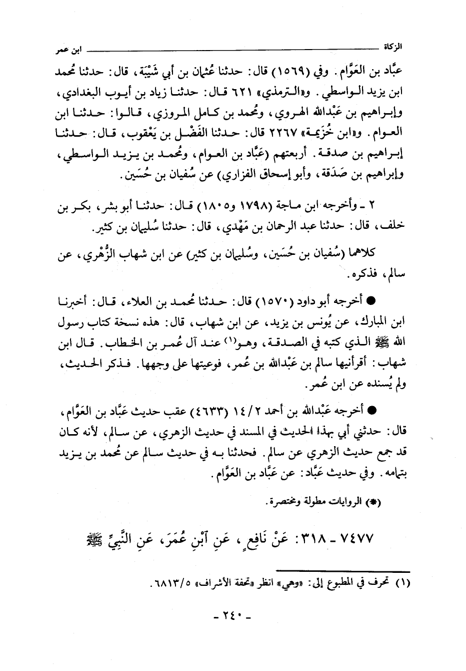 ٧٤٧٧ - عَنْ نَافِعٍ عَنِ ابْنِ عُمَرَ عَنِ النَّبِىِّ صلى الله عليه وسلم