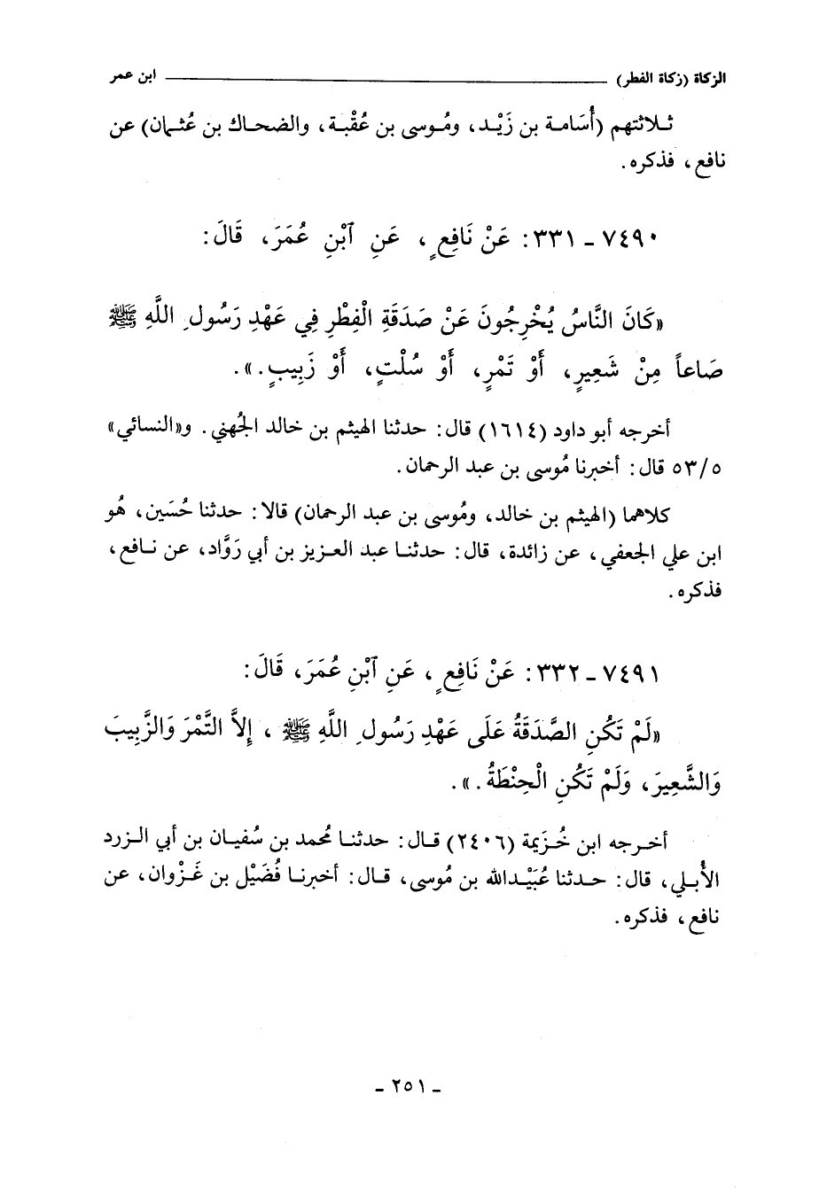- رواه عمر بن نافع , عن نافع , عن ابن عنر , به , عند البخاري (١٥٠٣) , وأبي داود (١٦١٢) , والنسائي ٥/ ٤٨ , وسلف في الحديث رقم (٨٢٤٤.