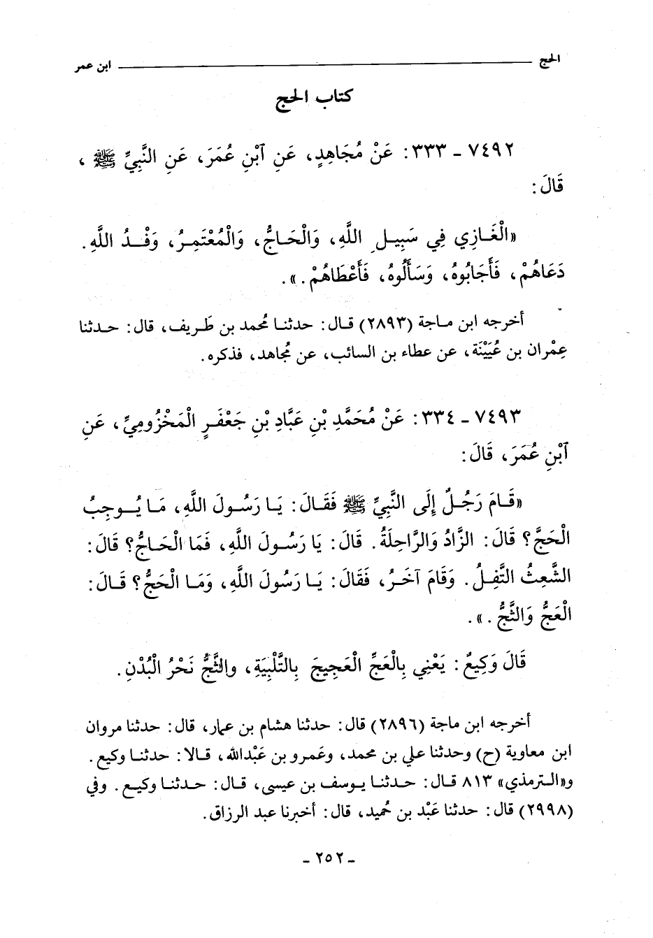 ٧٤٩٢ - عَنْ مُجَاهِدٍ عَنِ ابْنِ عُمَرَ عَنِ النَّبِىِّ صلى الله عليه وسلم قَالَ: