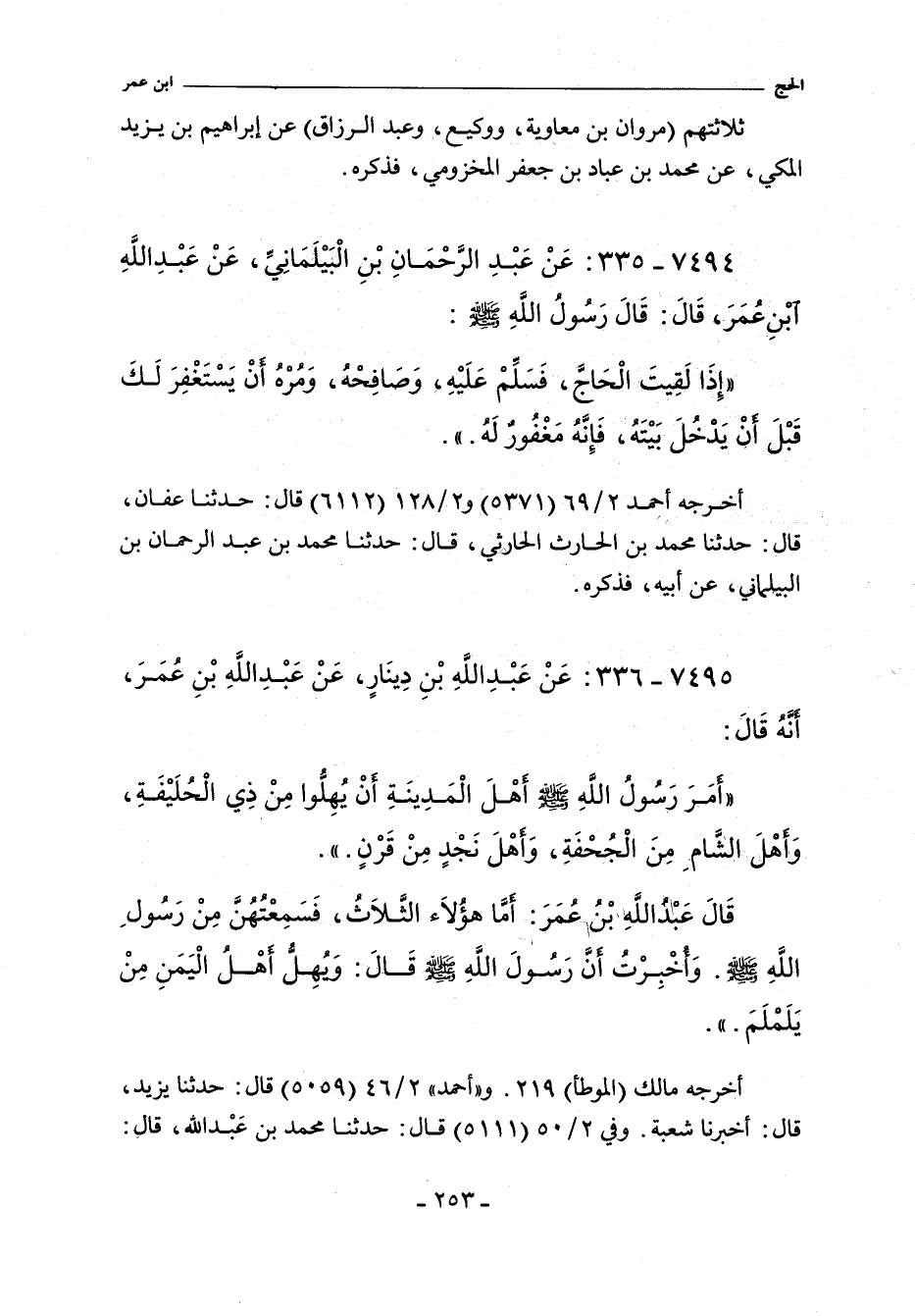 ٧٤٩٥ - عَنْ عَبْدِ اللَّهِ بْنِ دِينَارٍ عَنْ عَبْدِ اللَّهِ بْنِ عُمَرَ أَنَّهُ قَالَ: