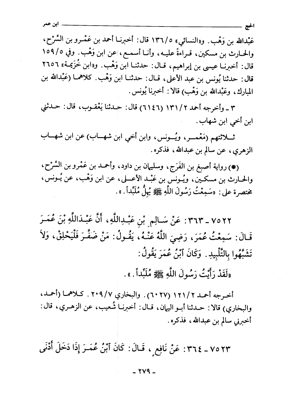 خمستهم (أصبغ، والمهري، وأحمد بن عمرو، والحارث، ويونس بن عبد الأعلى) عن عبد الله بن وَهْب، أخبرني يُونس، هو ابن يزيد الأيلي، عن الزهري، عن سالم، عن أبيه، قال: