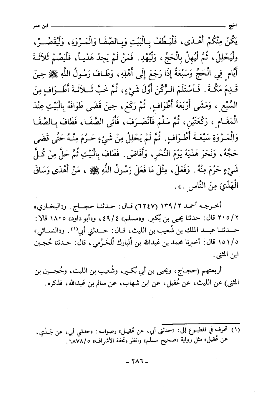 أربعتهم (حجاج، ويحيى بن بُكير، وشُعيب بن الليث، وحُجين بن المثنى) عن الليث، عن عُقيل، عن ابن شهاب، عن سالم بن عبد الله، فذكره.