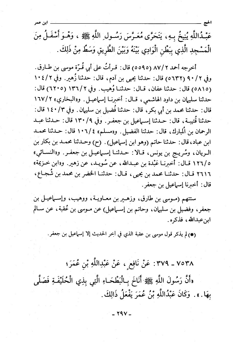 ستتهم (موسى بن طارق، وزهير بن معاوية، ووهيب، وإسماعيل بن جعفر، وفضيل بن سليمان، وحاتم بن إسماعيل) عن موسى بن عًقبة، عن سالم بن عبد الله، فذكره.