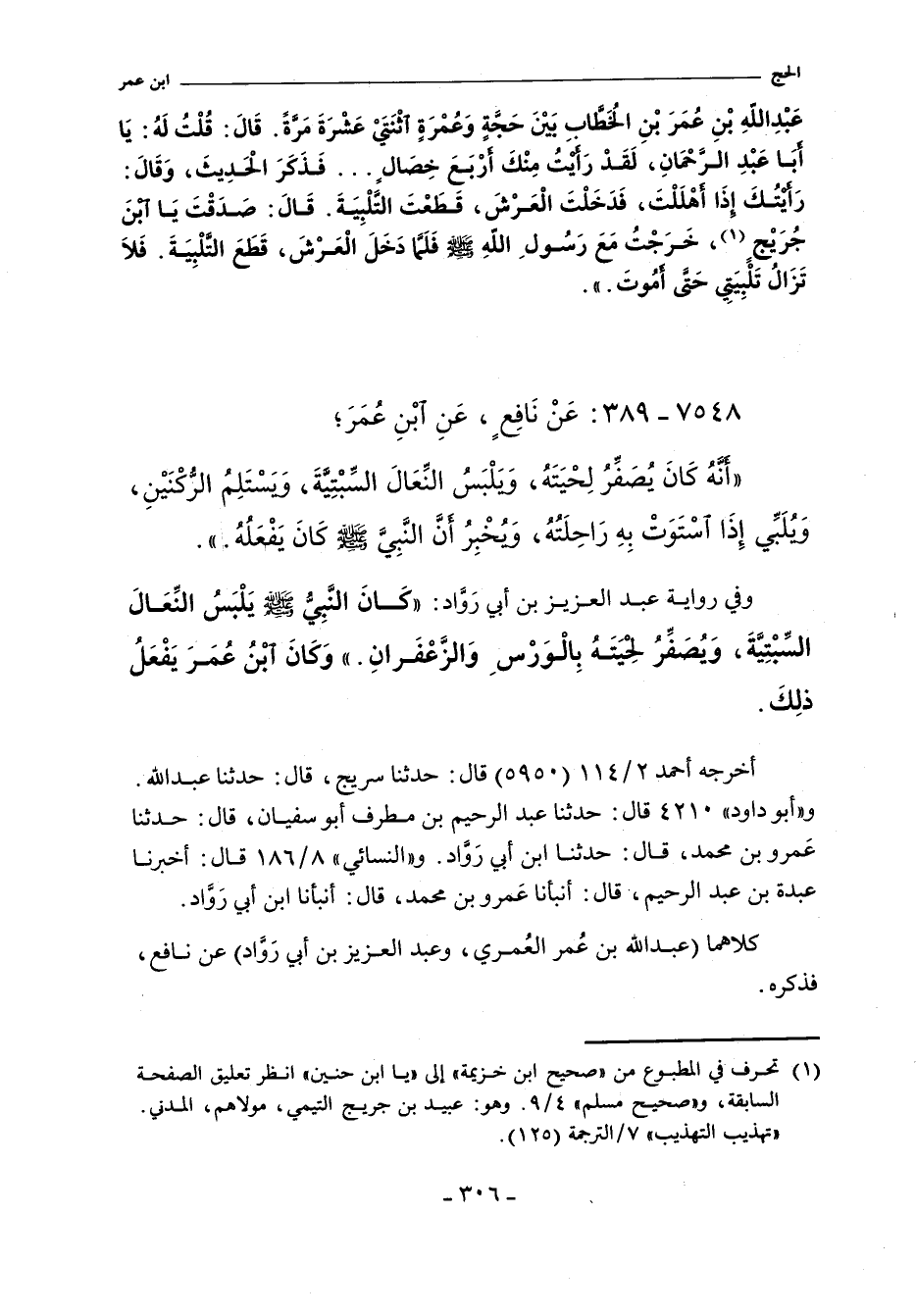 كلاهما (عبد الرحيم، وعبدة) عن عَمْرُو بْنُ مُحَمَّد. قَالَ: أَنْبَأَنَا ابْنُ أَبِى رَوَّادٍ , عَنْ نَافِعٍ , عَنِ ابْنِ عُمَرَ؛