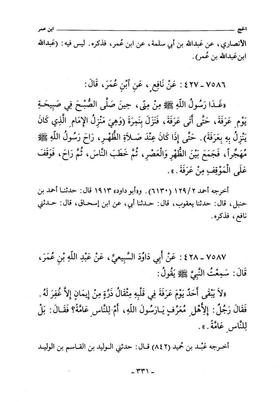 ٧٥٨٦ - عَنِ نَافِعٌ عَنِ ابْنِ عُمَرَ قَالَ: