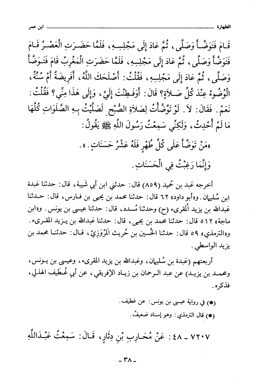 مَنْ تَوَضَّأَ عَلَى كُلِّ طُهْرٍ فَلَهُ عَشْرُ حَسَنَاتٍ.