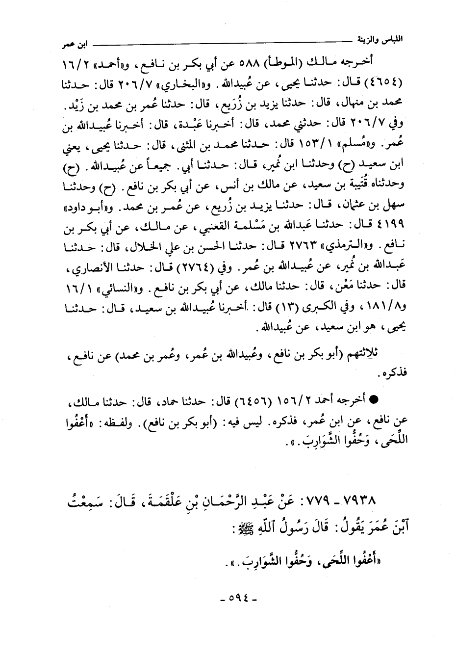 - أَخْرَجَهُ أحمد ٢/ ١٥٦ (٦٤٥٦) قال: حَدَّثَنَا حَمَّادٌ حَدَّثَنَا مَالِكٌ عَنْ نَافِعٍ عَنِ ابْنِ عُمَرَ قَالَ قَالَ رَسُولُ اللَّهِ صلى الله عليه وسلم: