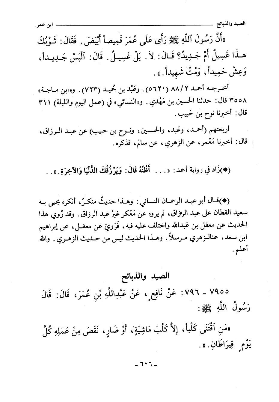 أربعتهم (أحمد , وعبد , والحسين , ونوح) عن عبد الرزاق , أخبرنا معمر , عن الزهري , عن سالم , فذكره.