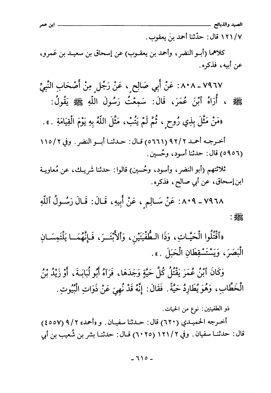 ٧٩٦٧ - عَنْ أَبِى صَالِحٍ الْحَنَفِىِّ عَنْ رَجُلٍ مِنْ أَصْحَابِ النَّبِىِّ صلى الله عليه وسلم أُرَاهُ ابْنَ عُمَرَ قَالَ سَمِعْتُ رَسُولَ اللَّهِ صلى الله عليه وسلم يَقُولُ: