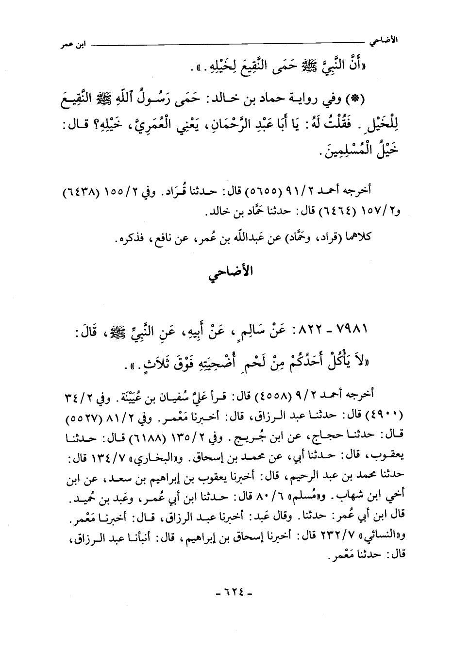 - وفي (٦٤٦٤): فَقُلْتُ لَهُ: يَا أَبَا عَبْدِ الرَّحْمَنِ - يَعْنِى الْعُمَرِىَّ - خَيْلِهِ؟ قَالَ خَيْلِ الْمُسْلِمِينَ.