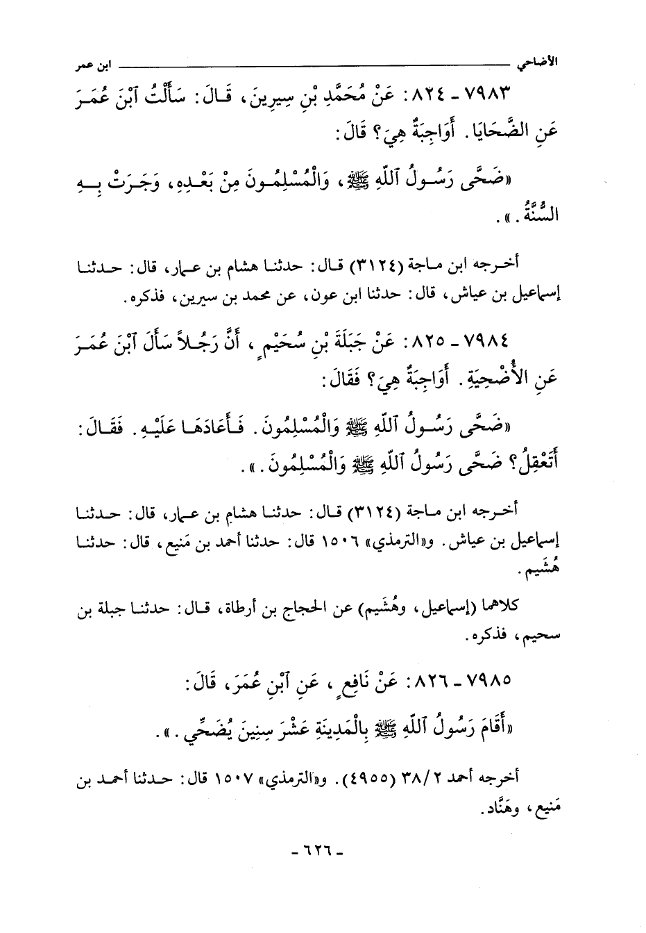 ٧٩٨٤ - عَنْ جَبَلَةَ بْنِ سُحَيْمٍ أَنَّ رَجُلاً سَأَلَ ابْنَ عُمَرَ عَنِ الأُضْحِيَةِ أَوَاجِبَةٌ هِىَ فَقَالَ: