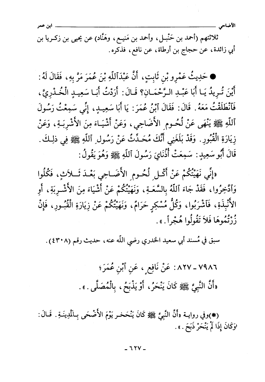٧٩٨٦ - عَنْ نَافِعٍ عَنِ ابْنِ عُمَرَ؛